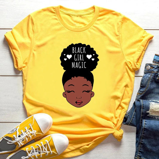 2024 Cool Melanin Tshirt Women Large Size Short Sleeve Top Yellow Femme T-Shirt Black Girl Magic Print Loose Female Clothes