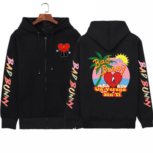 2022 Bad Bunny Un Verano Sin Ti Print Hoodie Men Fashion Zip Up Long Sleeve Jacket Coat Harajuku Gothic Y2K Teen Clothes