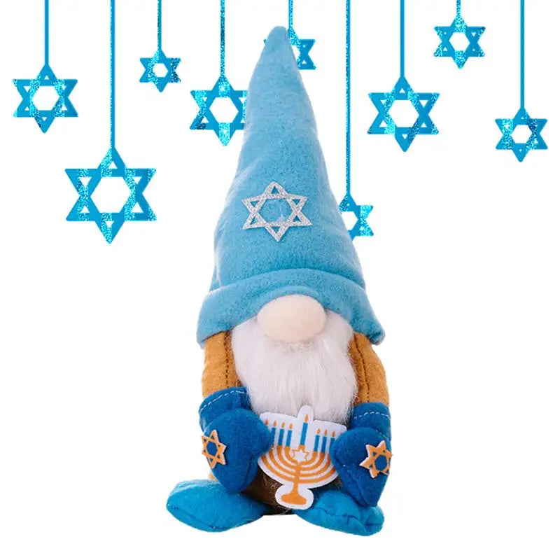 4.Enhance Your Festivities: Transform your home into a joyous Hanukkah haven with these charming stuffed gnomes. Infuse your celebrations with an irresistible and lively atmosphere, and captivate your loved ones with their adorable and entertaining presence.